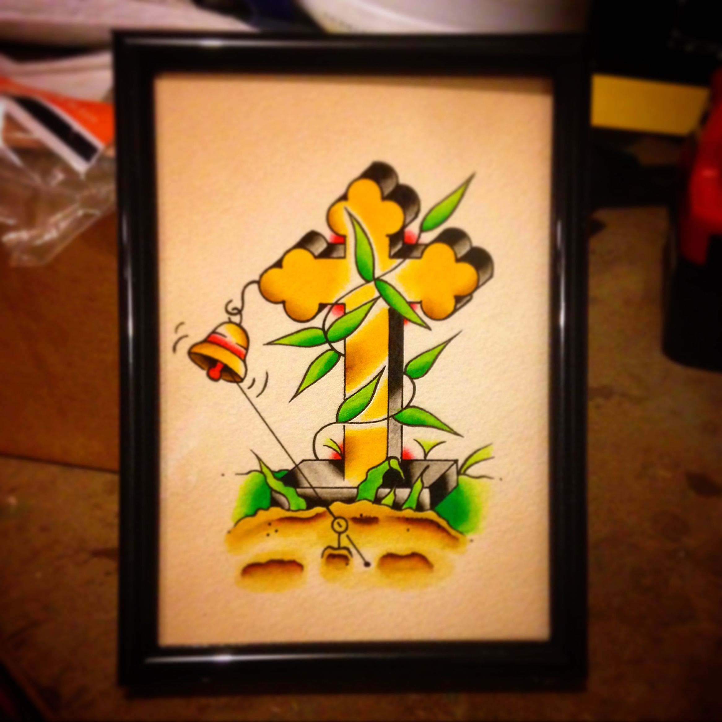 "Saved by the Bell" original watercolor 5 x 7" painting. Comes unframed.